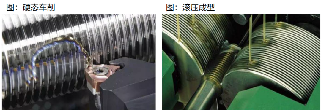 硬车:又称之为以车代磨,其采用螺纹滚道硬车削技术,最大优势是避免在磨削粗加工螺纹滚道过程中,因切削热导致丝杠硬度降低而引起可靠性差问题的发生,并且加工效率高,无油烟粉尘污染、绿色环保。对应的设备为车床。